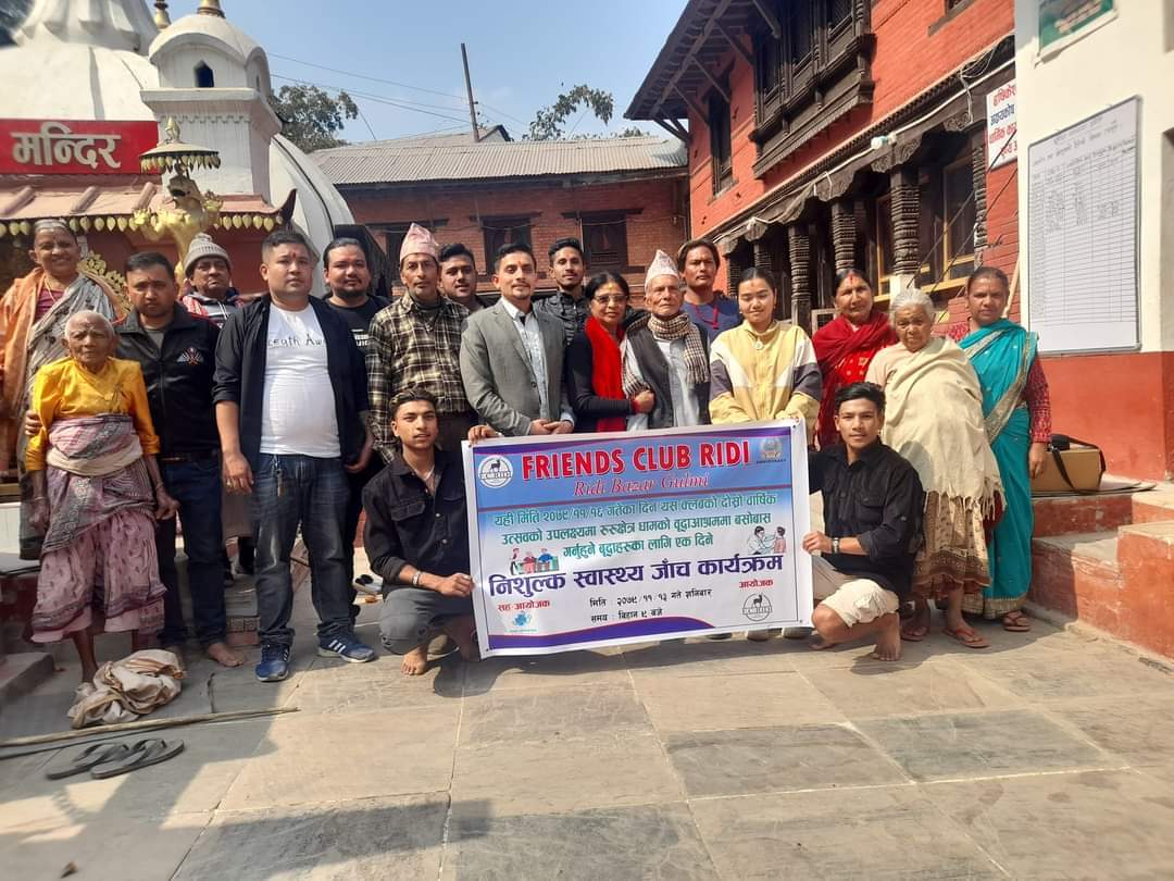 चुरामणि तिमिल्सिना रुरु क्षेत्रमा निशुल्क स्वास्थ शिविर समपन्न फेण्डस कलब रिडी गुल्मीले रुरु क्षेत्रमा रहेका वृद्ध वृद्धा लाई १ दिने निशुल्क स्वाथ शिबिर कार्यक्रम गरेको हो ।